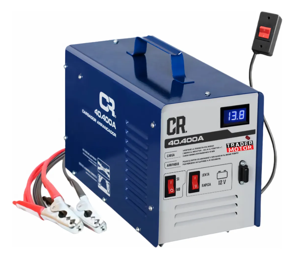 El Cargador De Baterías Con Arrancador CR 40-400 es el compañero perfecto para mantener tu vehículo en marcha sin complicaciones. Ya sea para emergencias o mantenimientos regulares, este aparato te proporcionará la tranquilidad de que nunca te quedarás varado por una batería descargada.
